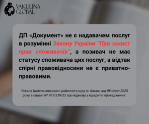 Громадяни, які замовляють послуги ДП “Документ” через закордонні філії, не вважаються споживачами в розумінні українського законодавства